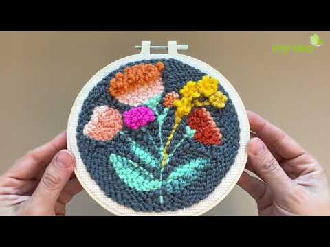 הערכה מכילה:חישוק פלסטיק בקוטר 20 ס“מ, בד מודפס, חוטי צמר ורקמה, מחט רקמה, משחיל למחט פאנץ‘, מחט פאנץ‘ ארגונומית עם ידית מעץ -כל מה שצריך לחוויה יצירתית ומהנה.